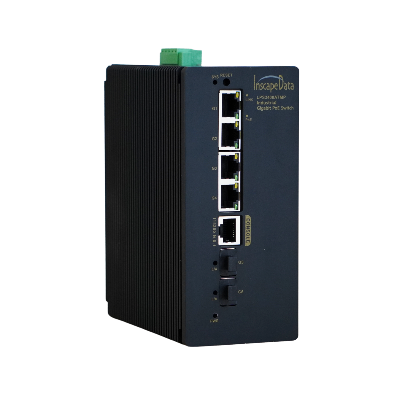 The LinkPower™ LPS3400ATMP Layer 2+ 6-Port Managed DIN Rail Industrial PoE (Power over Ethernet) IEEE802.3bt Switch offers 4-Port Gigabit PoE with 2 SFP Uplink Port Network Switch with dual power input redundancy with 48-57V DC and up to 95W Type 4 per PoE port, over one single network cable, and the total system power is 300W. The LPS3400ATMP Industrial Layer 2+ Managed Gigabit PoE Swtich is designed for industrial and commercial applications, e.g., high performance video surveillance, high bandwidth wireless mesh, carrier wifi installations, and etc. The terminal equipment, i.e., powered devices, such as high power IP camera, high performance wireless AP and industrial IP telephony. With the two port Gigabit fiber ports, it can transfer data up to a distance of 120Km from SFP fiber port to a remote control center and the systems is also offer with powerful anti-electromagnetic interference feature. Additionally, the LPS3400ATMP Layer 2+ Managed Gigabit PoE Switch is a Managed network switch with Link Aggregation, VLAN, Trunking, SNMP, and QoS technology to meet the accelerating demand for powering the most demanding outdoor PoE devices. The LPS3400ATMP Gigabit PoE Switch provide LED displays internally that show device status for easy power management and troubleshooting. The PoE technology conveniently eliminates the need to install networked devices with multiple wires, such as Inscape Data's IP cameras and SB300/BR300, and B3000/BR3000 wireless products, thereby reducing equipment and installation costs.